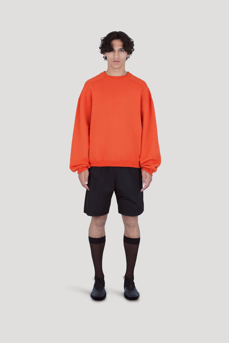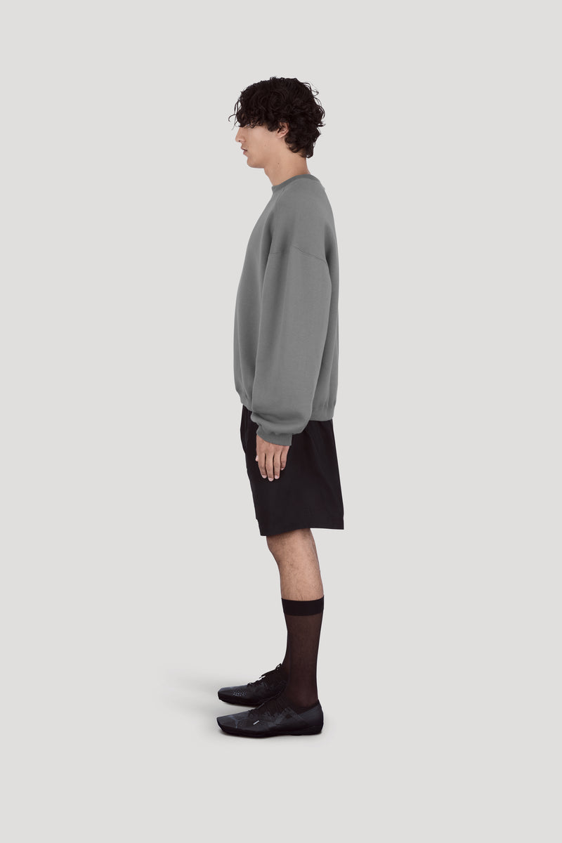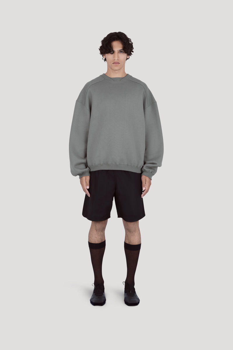 Jumper in compact heavy-weight cotton, with double layer detail on neckline.