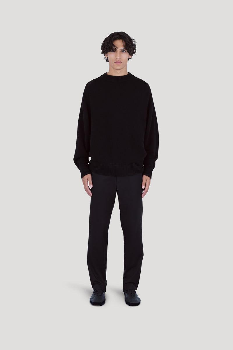 Jumper in medium weight cashmere knit with raglan sleeve detail.